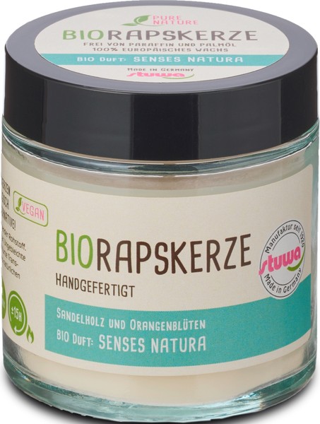• Lieferumfang: 1 Rapswachskerze im Glas „Senses Natura“ mit Deckel