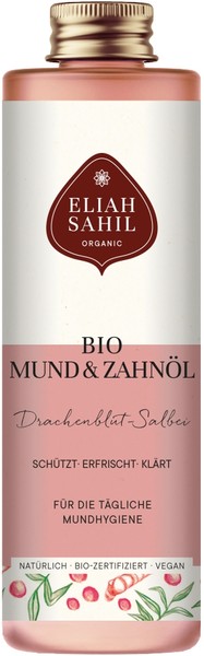 Eliah Sahil Zahnöl & Mundöl angereichert mit dem roten Harz des Drachenblutbaumes, Salbei, Echinacea, Kamille & Minze. Für die tägliche Mundhygiene.