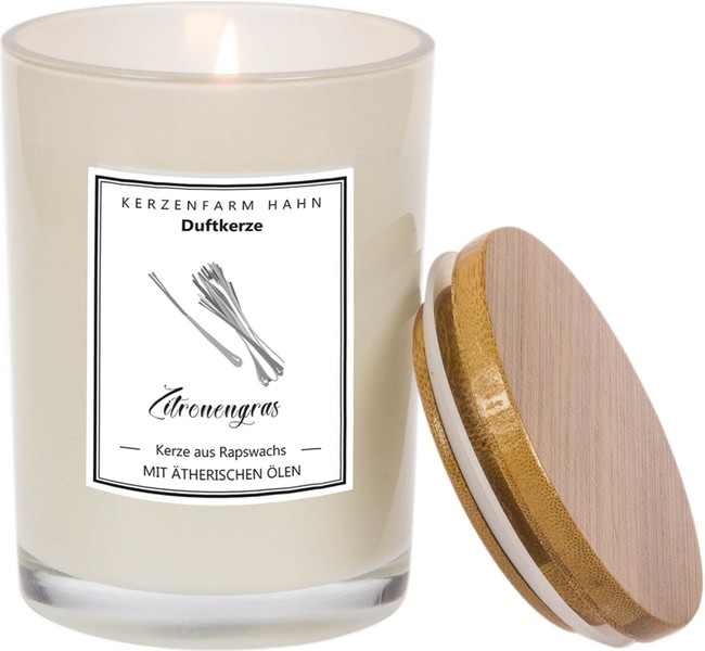 Zitronengras Duftkerze aus Rapswachs im Glas