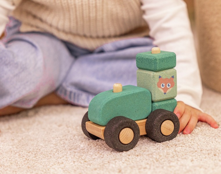 Der Traktor ist ideal für Kinder ab 18 Monaten. Die Größe der Bausteine und die stabile Konstruktion ermöglichen sicheres Spielen und fördern gezielt motorische Fähigkeiten.