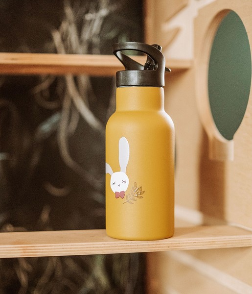 Die Kikadu Trinkflasche Hase ist eine robuste und kindgerechte Edelstahlflasche mit niedlichem Hasengesicht. Sie hält kohlensäurefreie Getränke ca. 12 Stunden warm oder kühl und wird mit zwei Deckeln geliefert – einem Sportdeckel und einem Edelstahldeckel mit Holz, beide mit praktischem Griff. Die Kinder Trinkflasche ist leicht, verschließbar und perfekt für Kindergarten, Schule und unterwegs. Eine alltagstaugliche Trinklösung für kleine Kinderhände.