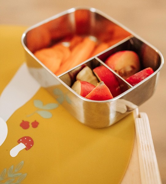 Hergestellt aus robustem Edelstahl ist die Kikadu Brotdose langlebig, leicht zu reinigen und ideal für Kindergarten, Schule oder Ausflüge. Ein fröhlicher Begleiter für kleine Hände und große Snackfreuden!
