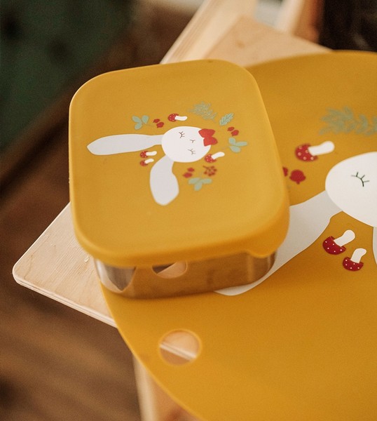 Die Kikadu Kinderbrotdose Hase bringt Spaß in der nächsten Pause! Mit ihrem niedlichen Hasenmotiv und den drei praktischen Fächern bleiben Snacks übersichtlich sortiert. Der kinderfreundliche Silikondeckel verschließt die Dose sicher, lässt sich aber auch wieder leicht öffnen.