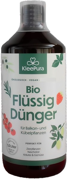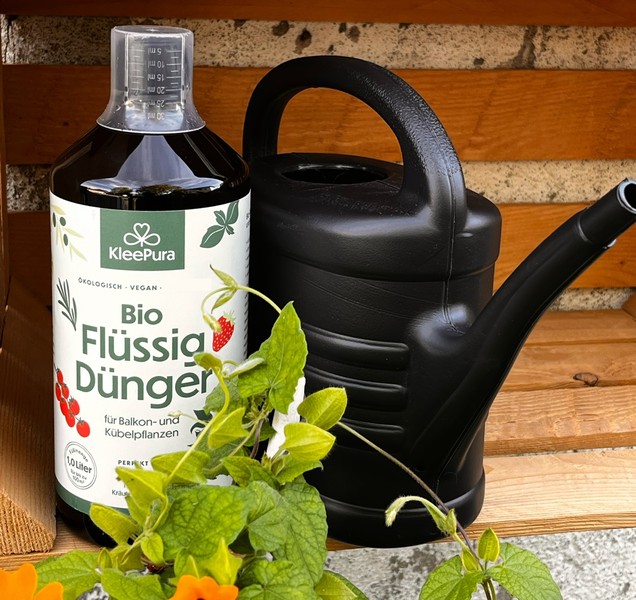 In Töpfen und Kübeln stehen den Pflanzen Nährstoffe begrenzt zur Verfügung. Mit dem KleePura Flüssigdünger können die Balkon- und Kübelpflanzen im Außenbereich notwendige, aber bereits verbrauchte Nährstoffe, wieder zu führen. Der Flüssigdünger ist ein ausgewogener, rein pflanzlicher Universaldünger aus natürlichen Stoffen. Er versorgt die Pflanzen mit allen wichtigen Hauptnährstoffen und Spurenelementen. Er aktiviert das wichtige Wurzelwachstum, damit die Nährstoffaufnahme dauerhaft möglich ist.