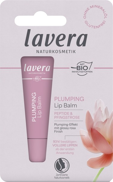 Der Lavera Lip Balm Plumping pflegt die Lippen intensiv, glättet sie sichtbar und verleiht ein glossy rosa Finish – ohne zu kleben. Peptide können die natürliche Kollagenbildung fördern für volle, definierte Lippen, während Pfingstrose beruhigt, schützt und ihre Geschmeidigkeit bewahrt. Für geschmeidig weiche, gepflegte und aufgepolsterte Lippen.