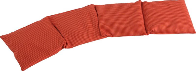 Die rot-orange Farbgestaltung des Nacken Wärmekissens erzeugt einen freundlichen Eindruck im Raum. Die Farbe hebt sich von neutralen Stoffen ab, wirkt aber natürlich und stimmig. Der Baumwollbezug ist fest genug, um die Füllung in den Kammern zu halten, und weich genug, dass er angenehm aufliegt.