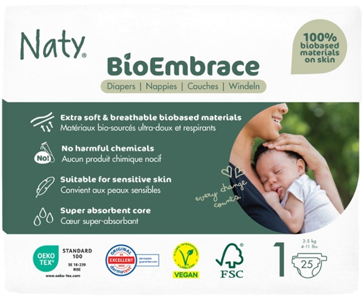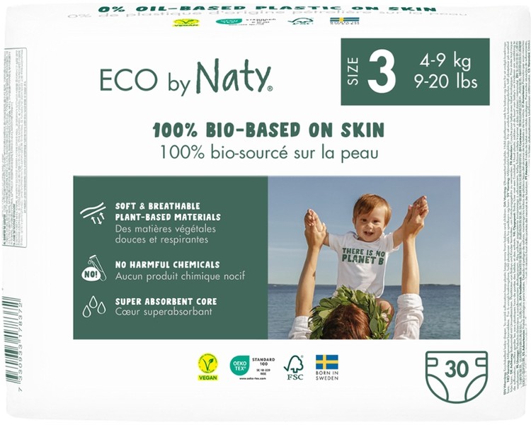 Naty ist überzeugt davon, dass Hautirritationen durch natürliche Materialien, die sanfter zur Haut Ihres Babys sind, verringert werden können. Aus diesem Grund basieren die Wegwerfwindeln von Naty auf natürlichen Materialien, die weniger chemische Stoffe enthalten, damit Ihr Baby glücklich ist.