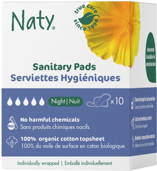 Dünn, weich und hochgradig absorbierend bieten sie einen angenehmen Sitz und Komfort. Außerdem sind die Naty Öko Damenbinden frei von Parfüm und Lotionen. Jede Binde ist einzeln in kompostierbarem Material verpackt.