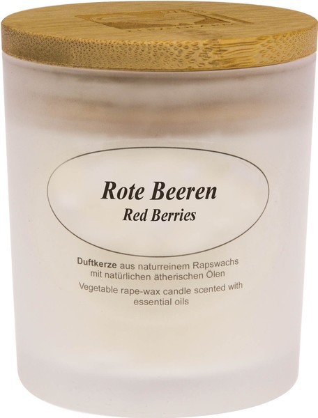 Rapswachs Kerze im gefrostetem Glas | Rote Beeren