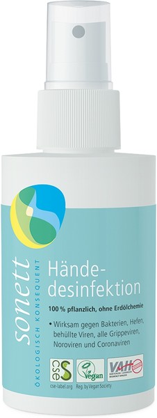 Ein äußerst wirksames Händedesinfektionsmittel mit 70% pflanzlichem Alkohol, zu 100% aus kontrolliert biologischem Anbau. Eine kleine Menge pflanzliches Bio Glyzerin, verhindert das Austrocknen der Haut.
