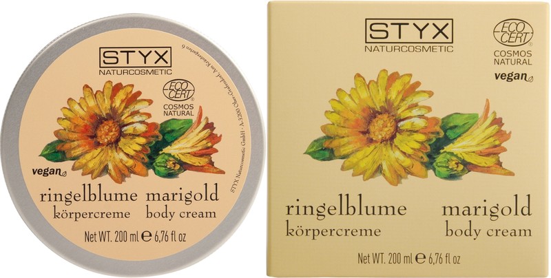 Styx Körpercreme hat eine wunderbare Textur, die sich geschmeidig auf der Haut anfühlt und sanft einzieht. Trockene, rissige und raue Haut, so wie Narben werden wieder weich und geschmeidig. Eine Kombination von verwöhnenden und wirksamen Kräutern sowie Naturwirkstoffen helfen der Ringelblume in der Styx Körpercreme. Die zusätzlich enthaltenen Wirkstoffe Sheabutter, Sojaöl, Aloe Vera und Vitamin E sorgen bei der täglichen Körperpflege für ein geschmeidiges Hautgefühl.