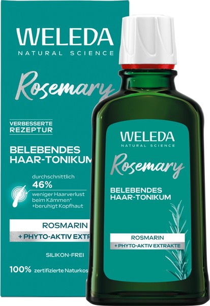 Weleda belebendes Haartonikum mit Bio Rosmarinöl und wertvollen Extrakten aus Mauerpfeffer und Meerrettichblättern unterstützt das Tonikum eine normale Kopfhaut und kann dünner werdendes Haar stärken. Der frische Duft des Rosmarins verleiht dem Tonikum eine besondere Note.