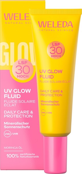 Das Weleda UV Glow Fluid LSF 30 bietet sofortigen UVA/UVB-Schutz und ist auch für empfindliche Haut geeignet.