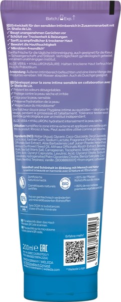 Reinigt die sensible Haut im Intimbereich sanft, schützt vor Trockenheit und Reizungen. Mit Aloe Vera, Hyaluronsäure und dem Präbiotikum Inulin.