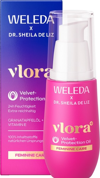 Wenn sich das Herz der Weiblichkeit nach einer Extraportion Pflege und Schutz sehnt, dann verwöhne sie mit dem Weleda Vlora+ Velvet Protection Oil. Damit man sich wohlfühlen kann, auch bei gestresster Haut oder trockenheitsbedingtem Spannungsgefühl, schenkt das Bio Intimpflegeöl der Haut 24h Feuchtigkeit und Regeneration.